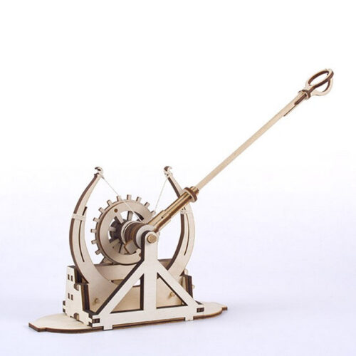 • Catapulta ad arco Leonardiana: fedele riproduzione funzionante della macchina bellica progettata da Leonardo da Vinci (Codice Atlantico, foglio 140r). Kit in legno naturale con meccanismo di balestre doppie, tamburo rotante e sistema di scatto originale. Modello didattico interattivo ideale per appassionati di storia rinascimentale, studenti e collezionisti.