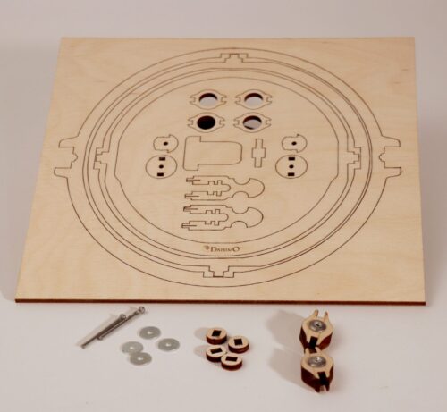 Due sono le nostre versioni: una di grandi dimensioni, destinata all’esposizione, che consente di sperimentare il meccanismo e interagire con esso, e una più piccola, in scatola di montaggio.