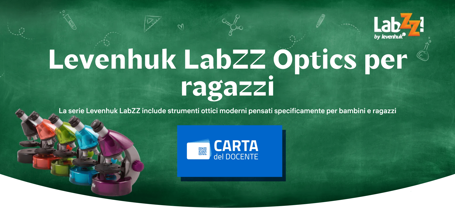 LEVENHUK progetta strumenti ottici di qualità per chi vuole esplorare il mondo da vicino. Dai microscopi ai visori notturni, passando per planetari e lenti d'ingrandimento, ogni prodotto è pensato per accendere la curiosità scientifica — in classe e oltre. Tutti i prodotti sono acquistabili con il Buono Docente.