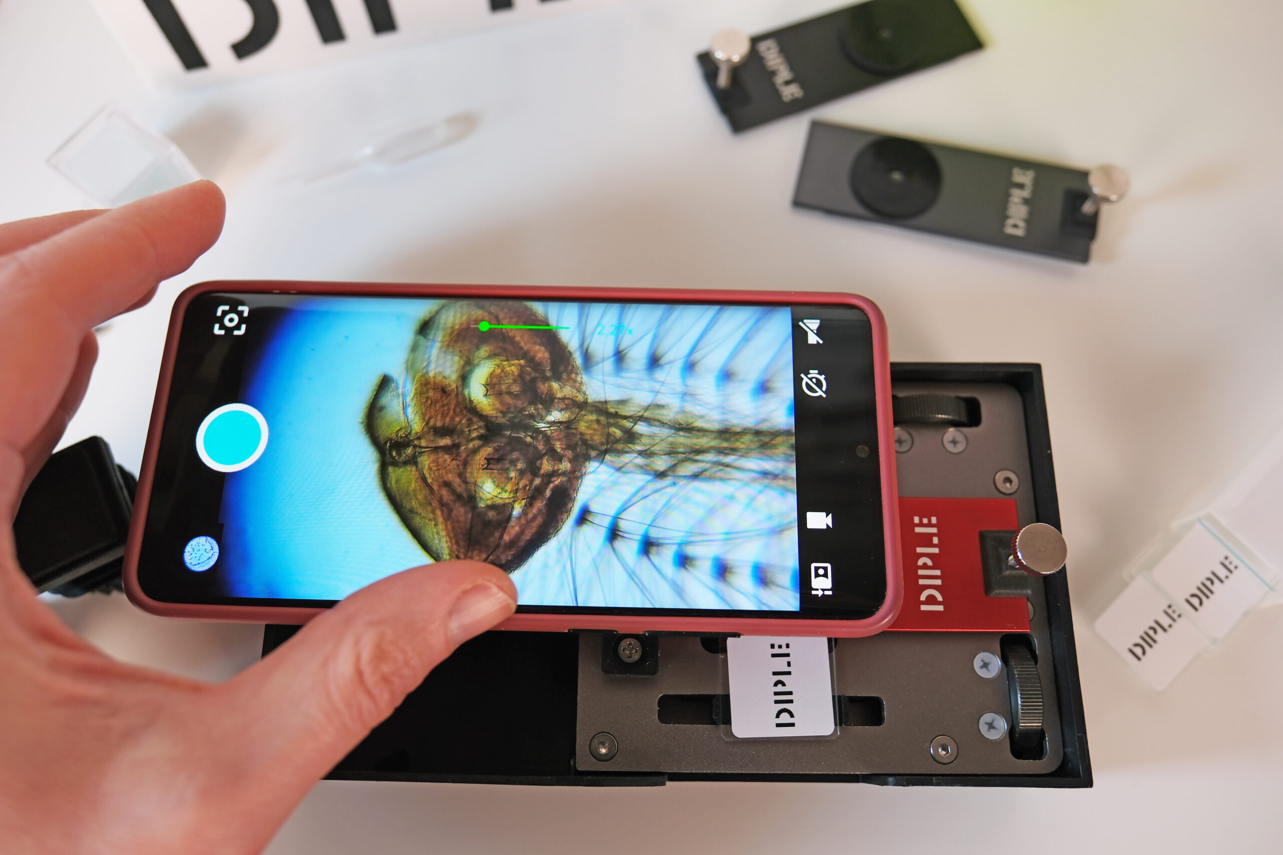 DIPLE BF is an innovative smartphone and tablet microscope designed to enhance science education. With high-quality optics, universal compatibility, and a lightweight, portable design, it offers students an engaging, hands-on learning experience, enabling them to explore and document the microscopic world with ease.