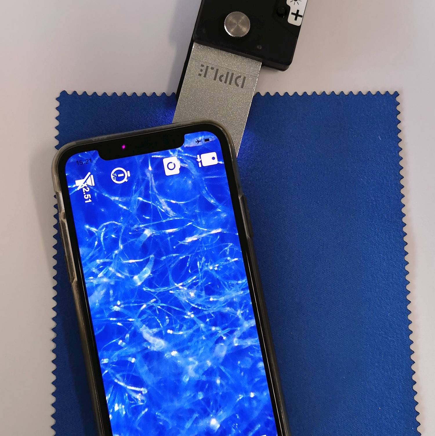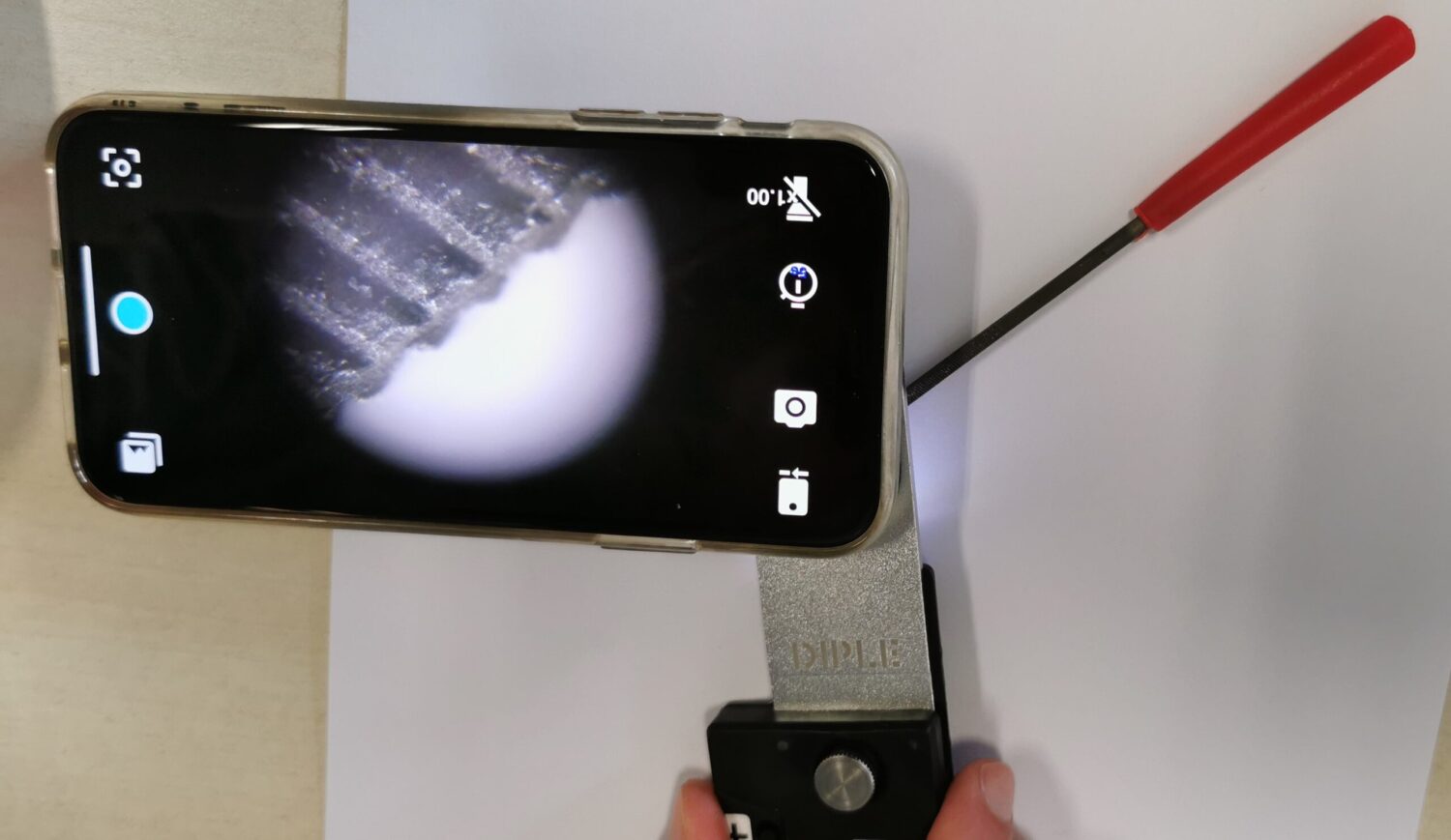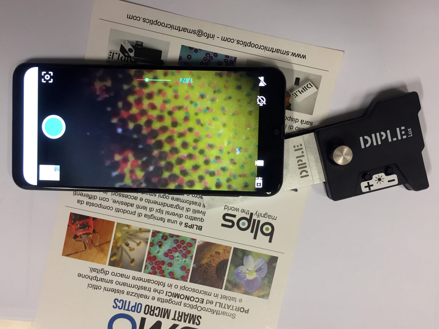 - Ingrandimento: DIPLE Lux offre un ingrandimento di circa 30x su uno schermo medio di smartphone. L’ingrandimento può essere ulteriormente aumentato con lo zoom digitale senza significativa pixelizzazione.