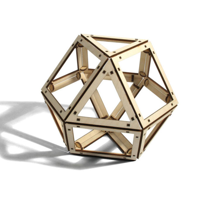 La complessità di questo poliedro si manifesta nella sua elaborata struttura composta da 6 quadrati e 8 triangoli che si intersecano con eleganza matematica. La caratteristica distintiva di questo kit è l’ingegnoso sistema di 48 giunti ad incastro progettati con precisione millimetrica, che permettono di montare e smontare il modello ripetutamente senza necessità di colla o strumenti supplementari.