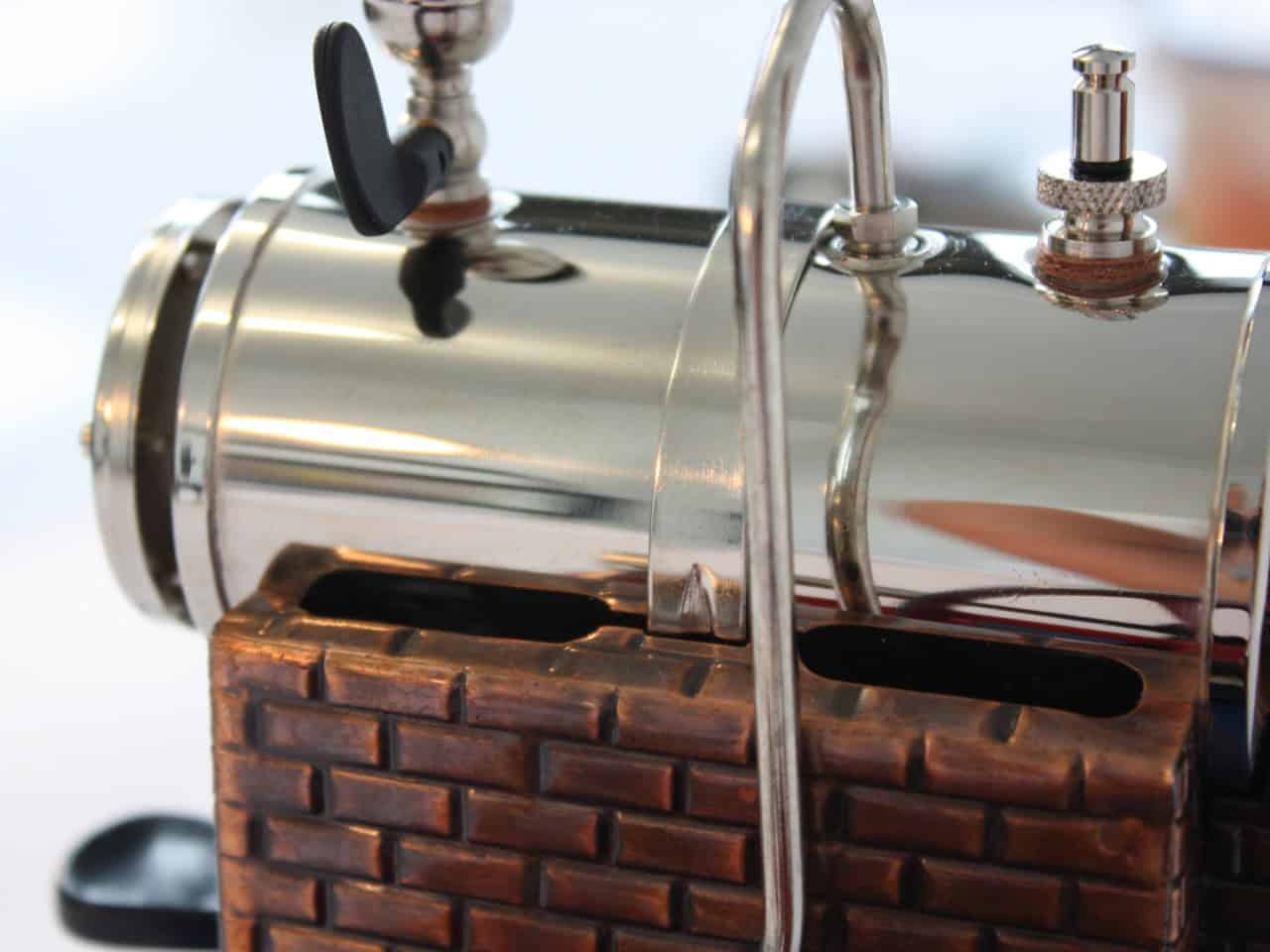 Il motore a vapore Wilesco D6 è dotato di una caldaia in ottone nichelato e lucidato a specchio e di un cilindro oscillante.