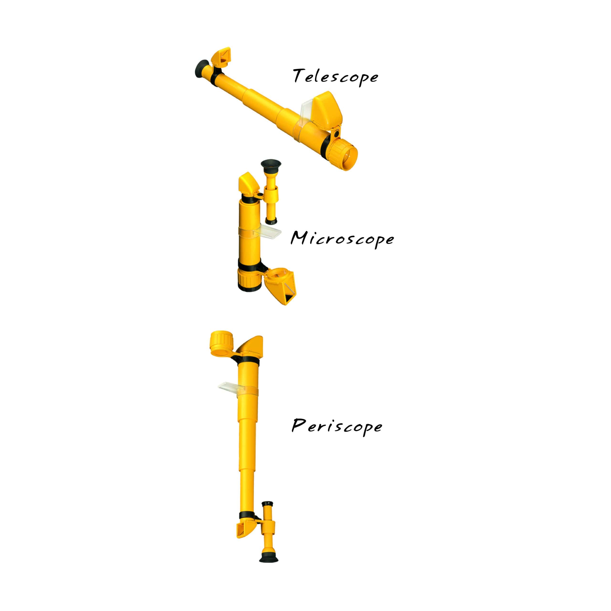 Ingegnoso strumento ottico che mediante semplici movimenti si trasforma in TELESCOPIO, MICROSCOPIO e PERISCOPIO.