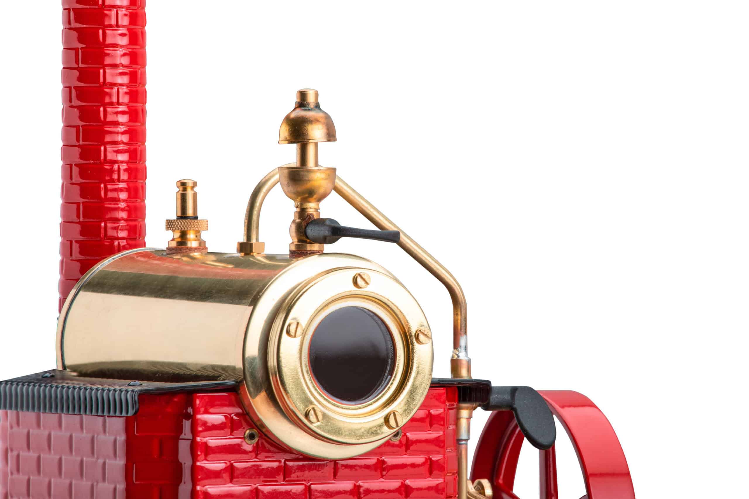 Questa piccola centrale elettrica ha una caldaia in ottone e due cilindri oscillanti, anch’essi in ottone.