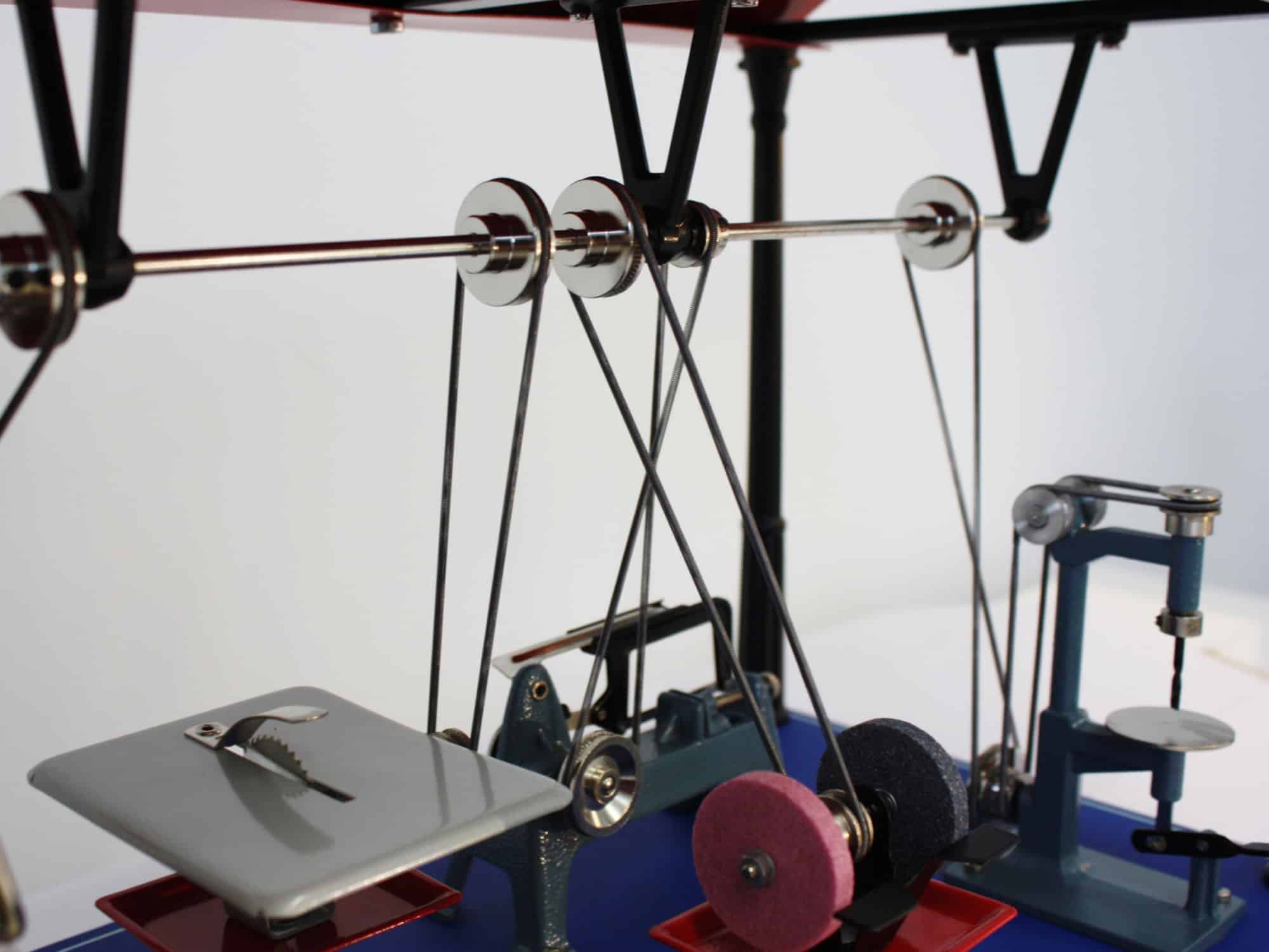 Nel più piccolo spazio, la meccanica versatile è presentata in modo compatto: la D141 è composta da un motore a vapore Wilesco modello D14 con un manometro e una valvola di arresto del vapore in un ambiente di officina con un tetto e quattro diverse macchine su un albero di trasmissione. La trasmissione è fissata al soffitto della sala e il tetto dell’officina poggia su quattro colonne ispirate al periodo.